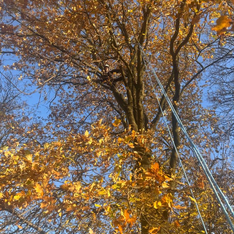 Ob Kronenpflege, Auslichtung oder Fällung: Wir arbeiten präzise, sicher und mit moderner Seilklettertechnik – auch an schwer zugänglichen Stellen.
